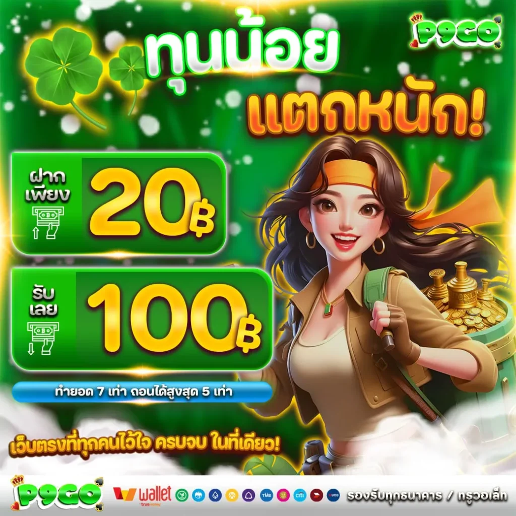 20 รับ 100 p9go โปรประจำวัน ฝากน้อย โบนัสจัดเต็ม ถอนได้จริง